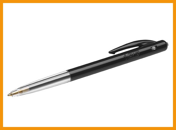 Bic M10 -kuulakärkikynässä on painomekanismi ja vapautusnappi rungon sivussa. Kynässä on osittain musteen värinen, osittain läpinäkyvä runko, jonka läpi näet jäljellä olevan musteen määrän. Muovinen klipsi. Muste on arkistokelpoista (ISO 12757-2).Musteen väri: musta