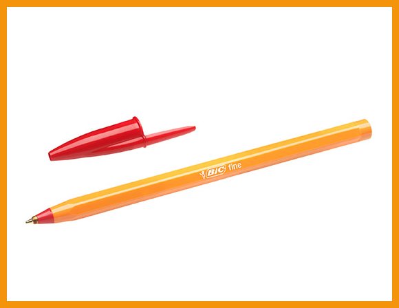 Bic Orange on hyvin perinteinen ja toimintavarma kuulakärkikynä. Oranssi runko takaa kynän erottuvan ympäristöstään. Korkki on riittoisan (jopa 3500 metriä) ja arkistokelpoisen (ISO 12757-2) musteen värinen.Musteen väri: punainen