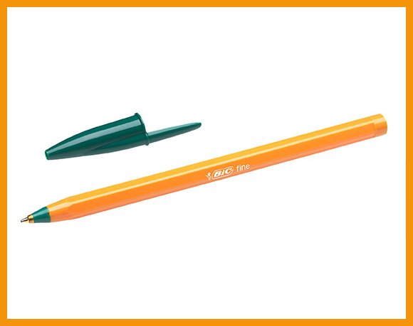 Bic Orange on hyvin perinteinen ja toimintavarma kuulakärkikynä. Oranssi runko takaa kynän erottuvan ympäristöstään. Korkki on riittoisan (jopa 3500 metriä) ja arkistokelpoisen (ISO 12757-2) musteen värinen.Musteen väri: vihreä