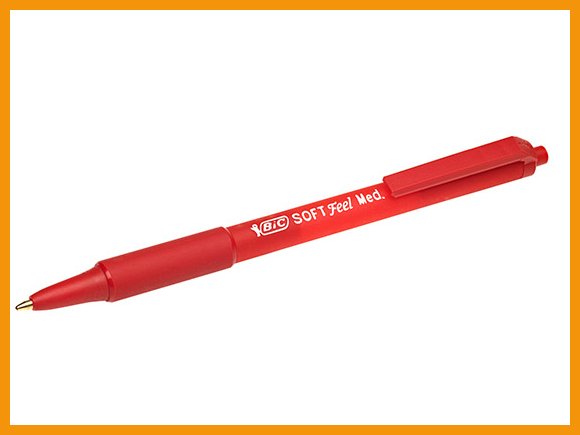 Käteen miellyttävässä Bic SoftFeel -kuulakärkikynässä on kuminen otealue, musteen värinen runko, painomekanismi ja muovinen klipsi. Muste on arkistokelpoista (ISO 12757-2).Musteen väri: punainen