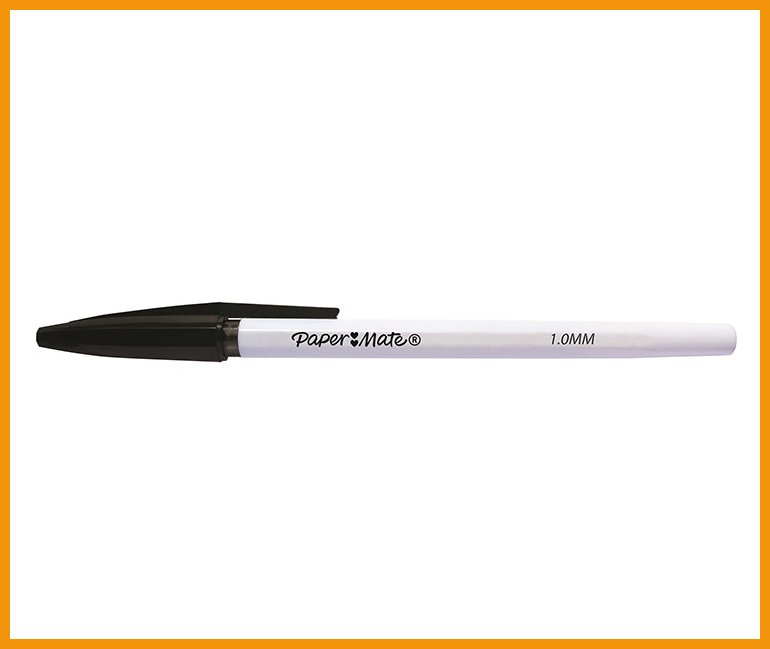 Paper Mate 045 on simppeli kuulakärkikynä ilman mekanismia. Korkissa taskupidike.Musteen väri: musta