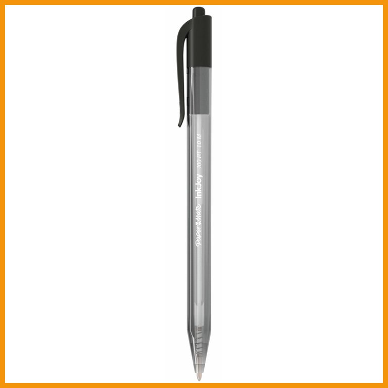 Painomekanismilla varustetun Paper Mate InkJoy 100RT -kuulakärkikynän ainutlaatuisen juokseva, mutta samaan aikaan nopeasti kuivuva ja sottaamaton muste tekee kirjoittamisesta uskomattoman sulavaa. Kirjoittaminen ei rasita kättä, kun kynää ei tarvitse puristaa tai painaa. Ergonomisessa kolmikulmaisessa rungossa on taskupidike. Arkistokelpoinen muste (ISO 12757-2).Musteen väri: musta
