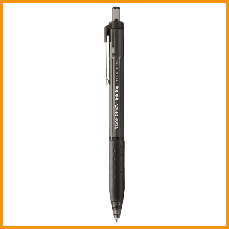 Painomekanismilla varustetun Paper Mate InkJoy 300RT -kuulakärkikynän ainutlaatuisen juokseva, mutta samaan aikaan nopeasti kuivuva ja sottaamaton muste tekee kirjoittamisesta uskomattoman sulavaa. Kirjoittaminen ei rasita kättä, kun kynää ei tarvitse puristaa tai painaa. Kynässä on metallinen klipsi ja kuminen otealue. Arkistokelpoinen muste (ISO 12757-2).Musteen väri: musta