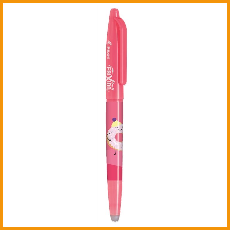 Pilot FriXion Ball Fancy on kuulakärkikynä, jonka innovatiivisen ja paperilla vaivattomasti liukuvan FriXion-musteen voi pyyhkiä pois kitkan aiheuttaman lämmön avulla, esimerkiksi kynän päässä olevalla pyyhekumilla hankaamalla. FriXion Ball Fancy -kynien kuvituksissa seikkailevat herkulliset hahmot. Kynässä on sininen muste. Rungossa on kuminen otealue ja tiukasti istuvassa korkissa taskuklipsi.Kynään on saatavana runsaasti vaihtosäiliöitä kaikissa sateenkaaren väreissä Etsi verkkokaupasta hakusanalla Vaihtosäiliö Pilot FriXion.