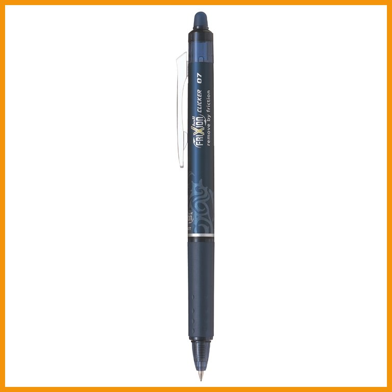 Pilot FriXion Clicker on painomekanismilla varustettu kuulakärkikynä, jonka innovatiivisen ja paperille vaivattomasti liukuvan FriXion-musteen voi pyyhkiä pois kitkan aiheuttaman lämmön avulla, esimerkiksi kynän päässä olevalla pyyhekumilla hankaamalla. Poispyyhkiminen onnistuu jopa vuosien kuluttua kirjoitushetkestä, joten ethän käytä kynää allekirjoituksiin! Musteen värisessä rungossa on pehmeä kumiote ja metallinen taskuklipsi.Kynään on saatavana runsaasti vaihtosäiliöitä kaikissa sateenkaaren väreissä. Etsi verkkokaupasta hakusanalla Vaihtosäiliö Pilot Frixion.