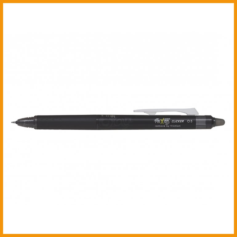 Pilot FriXion Point Clicker on painomekanismilla varustettu kuulakärkikynä, jonka innovatiivisen ja paperille vaivattomasti liukuvan FriXion-musteen voi pyyhkiä pois kitkan aiheuttaman lämmön avulla, esimerkiksi kynän päässä olevalla pyyhekumilla hankaamalla. Poispyyhkiminen onnistuu jopa vuosien kuluttua kirjoitushetkestä, joten ethän käytä kynää allekirjoituksiin! Rungossa on pehmeä kumiote, musteen väriset yksityiskohdat ja metallinen taskuklipsi.Kynään on saatavana runsaasti vaihtosäiliöitä kaikissa sateenkaaren väreissä. Etsi verkkokaupasta hakusanalla Vaihtosäiliö Pilot Frixion.
