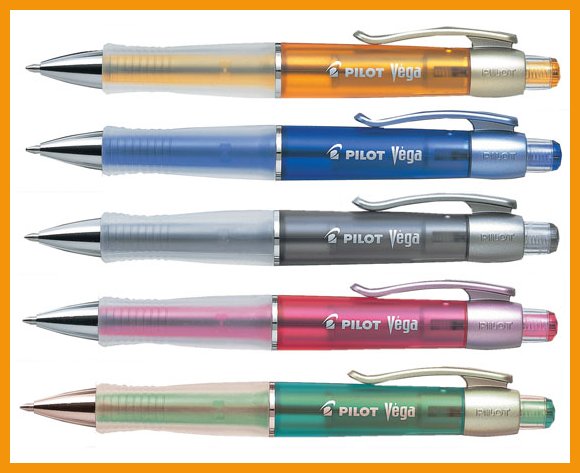 Pilot Vega Neon -kuulakärkikynässä on leveä ja ergonominen, kumisella otepinnalla päällystetty musteen värinen runko, painomekanismi, teräskärki ja klipsi. Öljypohjainen ja liukkaasti luistava muste on arkistokelpoista (ISO 12757-2) ja sillä kirjoittaa noin 700 metriä.Kärki: 1,0 mm