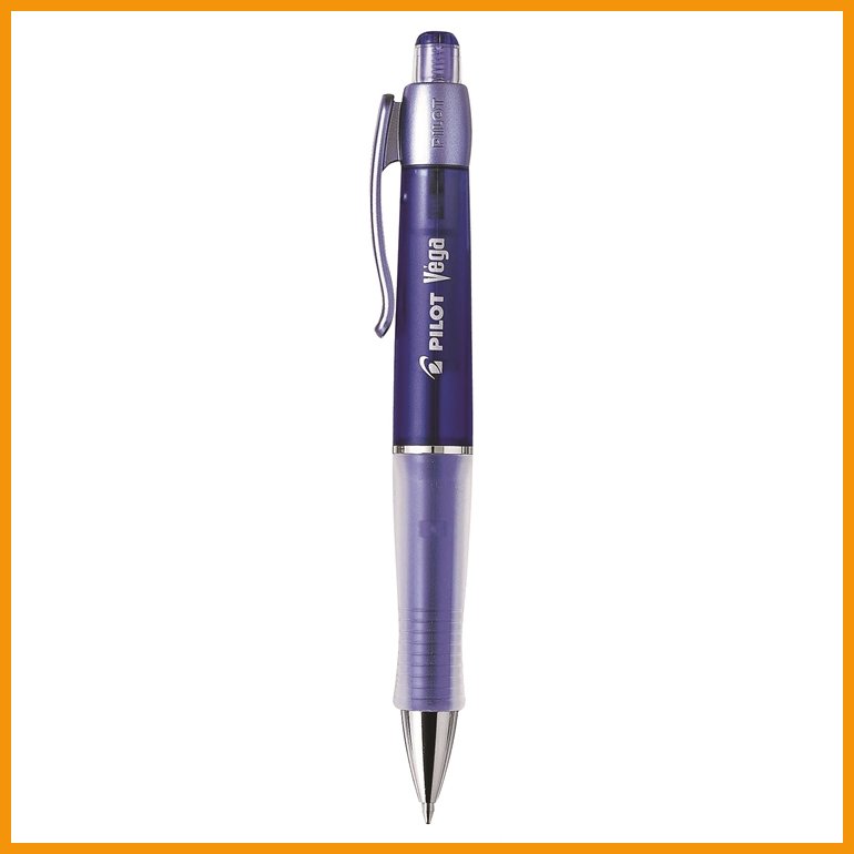 Pilot Vega -kuulakärkikynässä on leveä ja ergonominen, kumisella otepinnalla päällystetty musteen värinen ja läpikuultava runko, painomekanismi, teräskärki ja klipsi. Öljypohjainen ja liukkaasti luistava muste on arkistokelpoista (ISO 12757-2) ja sillä kirjoittaa noin 700 metriä.Musteen väri: sininen