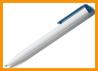 Painomekanismilla varustetussa Senator Super Hit -kuulakärkikynässä on valkoinen muovirunko ja sininen taskuklipsi.Musteen väri: sininen.