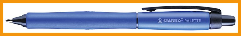 Stabilo Palette -kuulakärkikynällä kirjoittaminen on erittäin sujuvaa hyvin liukuvan geelipohjaisen musteen ja liukumattoman otepinnan ansiosta. Uudelleentäytettävässä kynässä on jäljellä olevan mustetason osoitin ja taskupidike.Musteen väri: sininen