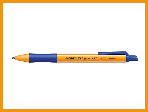 Stabilo Pointball on painomekanismilla varustettu kuulakärkikynä. Jopa 79-prosenttisesti kierrätysmuovista valmistettuun kynään on saatavilla myös vaihtosäiliö. Kynän rungossa on pehmustettu otepinta helpottamaan kirjoittamista ja sen muste on arkistokelpoista (ISO 12757-2).Musteen väri: sininen