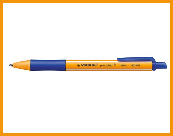 Stabilo Pointball on painomekanismilla varustettu kuulakärkikynä. Jopa 79-prosenttisesti kierrätysmuovista valmistettuun kynään on saatavilla myös vaihtosäiliö. Kynän rungossa on pehmustettu otepinta helpottamaan kirjoittamista ja sen muste on arkistokelpoista (ISO 12757-2).Musteen väri: sininen