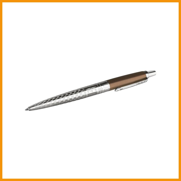 Parker Jotter Gothic on tyylikäs kuulakärkikynä, jossa on miellyttävän äänen päästävä painomekanismi, ruostumattomasta teräksestä valmistettu runko ja ikoninen, nuolenmuotoinen taskupidike sekä goottinen kuviointi ja osittain pronssinvärinen runko.Kuulakynä Parker Jotter Gothic pronssi on hyvä toimistotarvike, jonka toimituksen kesto on verkkokaupasta tilattuna 1-2 päivää. Tiedäthän, että ilmainen toimitus on kaikilla yli 140 € hintaisilla tilauksilla! Meiltä voit tilata laskulla ja ilman rekisteröitymistä.