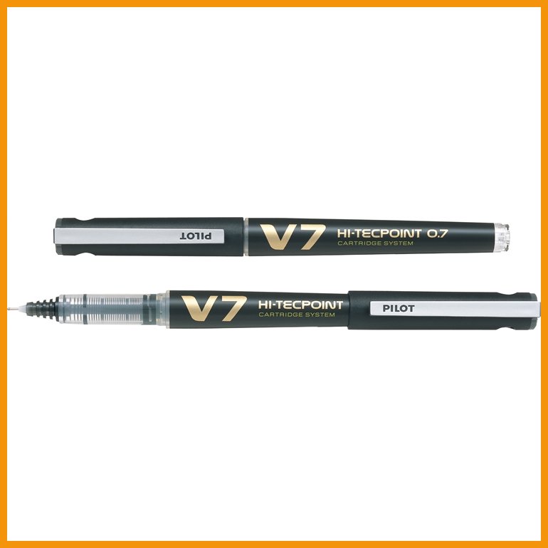 Pilot BeGreen Hi-Tecpoint V7 -kuulakärkikynä on valmistettu 72-prosenttisesti kierrätysmuovista ja siihen on saatavilla vaihtosäiliö koodilla 304772. Kynässä on kapea kärki, kevyesti juokseva muste ja korkkiin kiinnitetty metallinen klipsi.Musteen väri: musta