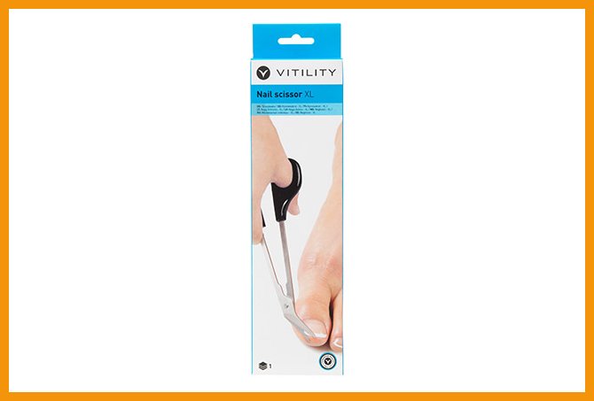 Vitilityn XL-kokoiset kynsisakset on suunniteltu erityisesti henkilöille, joilla on vaikeuksia ulottua varpaisiinsa. Saksissa on pidennettty kahva ja suurennettu aukko keskisormelle, nimettömälle ja pikkusormelle, jotka tarjoavat yhdessä hyvän hallinnan leikkaamisen aikana.Pituus: 20,7 cm