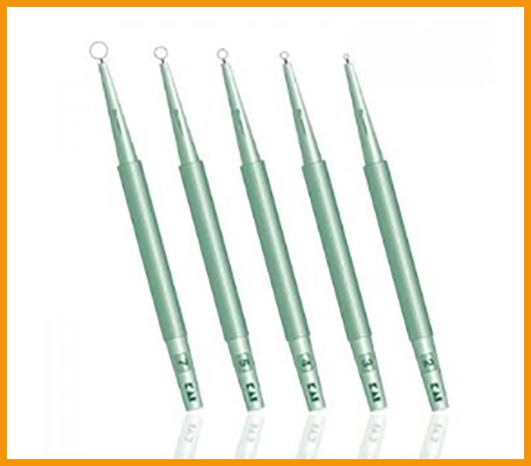 Rengaspäinen Kai-kyretti on kertakäyttöinen ja steriili kyretti haavojen puhdistamiseen ja luomien poistoon. Terä on ruostumatonta terästä ja kahva muovia.Halkaisija: 4 mm
