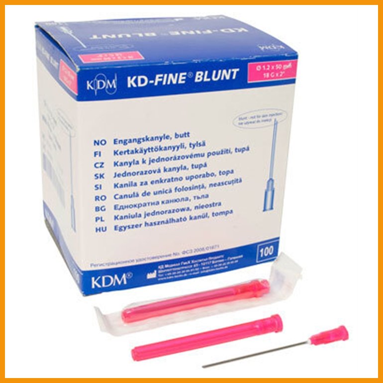 Steriili ja tylppäkärkinen KD-Fine-lääkkeenottoneula suodattimella soveltuu vain lääkkeenottoon. Suodatin ehkäisee lasipartikkelien siirtymistä ruiskuun.Koko: 18G x 2 (1,2 x 40 mm)