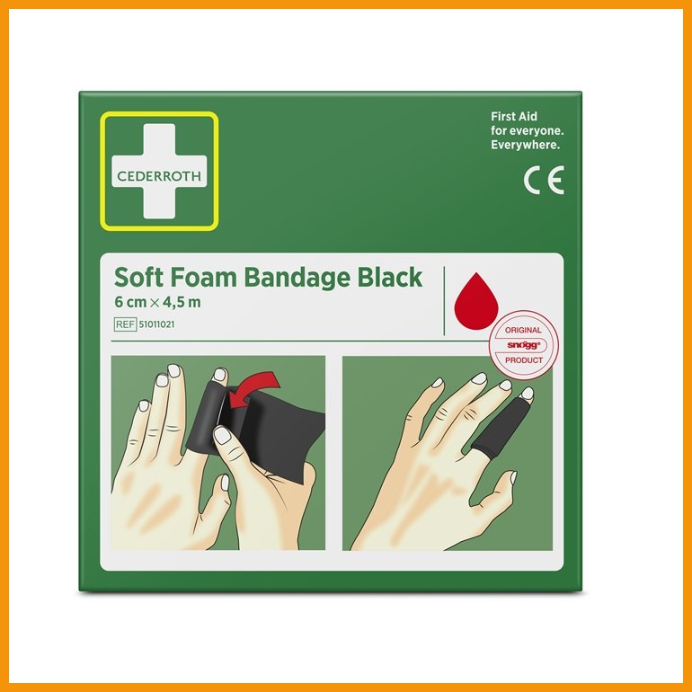 Cederroth Soft Foam on joustava ja itsekiinnittyvä laastari, joka toimii myös siteenä. Liimaton laastari ei tartu ihoon tai ihokarvoihin. Tuote soveltuu kaikenlaisiin pieniin haavoihin ja pysyy paikoillaan myös vedessä. Etenkin likaisempiin ympäristöihin soveltuvan laastarin musta pinta estää lian tai öljytahrojen näkymisen. Rullasta on helppo katkaista sopivan mittainen pala, joka on muotoiltavissa sormeen, käteen tai varpaaseen sopivaksi.Mitat: 6 cm x 4,5 m