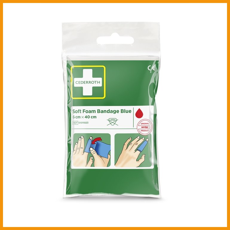 Cederroth Soft Foam on joustava ja itsekiinnittyvä laastari, joka toimii myös siteenä. Liimaton laastari ei tartu ihoon tai ihokarvoihin. Näppärässä taskupakkauksessa tuleva tuote soveltuu kaikenlaisiin pieniin haavoihin ja pysyy paikoillaan myös vedessä. Sinistä laastaria suositellaan etenkin elintarvikkeiden käsittelijöille, jotta se voidaan tarvittaessa havaita nopeasti. Tuote on helposti muotoiltavissa sormeen, käteen tai varpaaseen sopivaksi.Mitat: 6 x 40 cm
