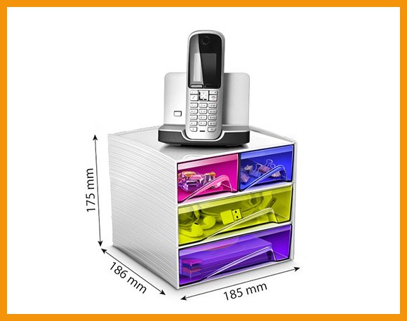CEP Happy -sarjan laatikosto on mainio tapa säilyttää toimiston pientarvikkeita siististi ja tyylikkäästi. Laatikostossa on 2 pientä ja 2 isoa laatikkoa, joihin mahtuvat vaikkapa klemmarit, USB-piuhat ja muistitikut. Useita laatikostoja voidaan pinota päällekkäin.Mitat: 186 x 185 x 175 mm