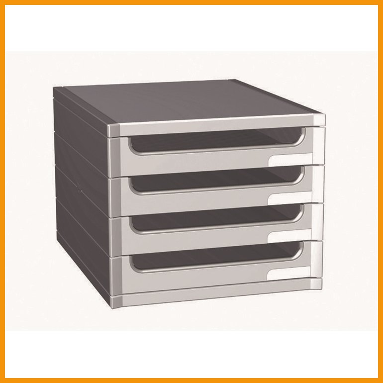 Exacompta Big Box -vetolaatikostossa on 4 lokeroa A4-kokoisille papereille. Avonaisissa vetolaatikoissa on leveät sormikolot, stopparit ja etiketinpitimet. Tyylikkään laatikoston runko on tummanharmaa, laatikot vaaleanharmaat ja laatikoiden reunat hopeiset.Laatikoston mitat: 347 x 278 x 267 mm