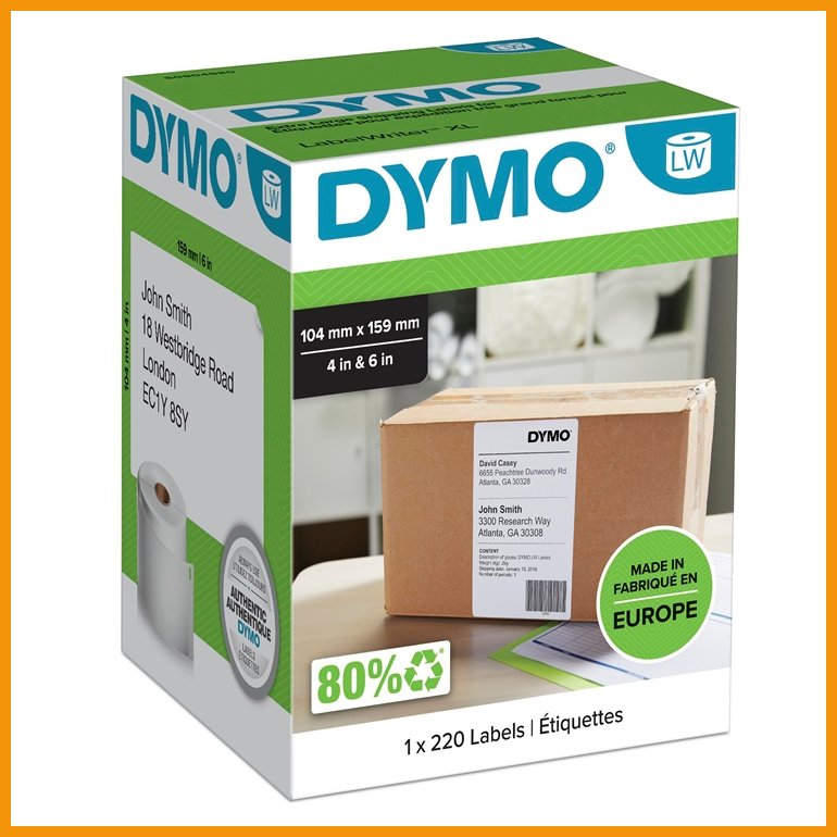 DYMO LabelWriter -lähetystarrat ovat nopea ja helppo tapa kirjoittaa osoitetiedot suurikokoisiinkin postitettaviin lähetyksiin. Lämpösiirtotekniikalla toimivat tarrarullat sopivat DYMO LabelWriter 4XL -tarrakirjoittimeen.