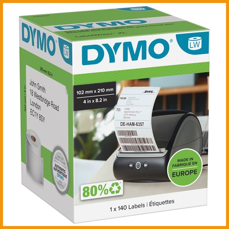 DYMO LabelWriter DHL -lähetystarrat sopivat DYMO LabelWriter 5XL -tarrakirjoittimeen. Lämpösiirtotekniikalla toimivat tarrat.