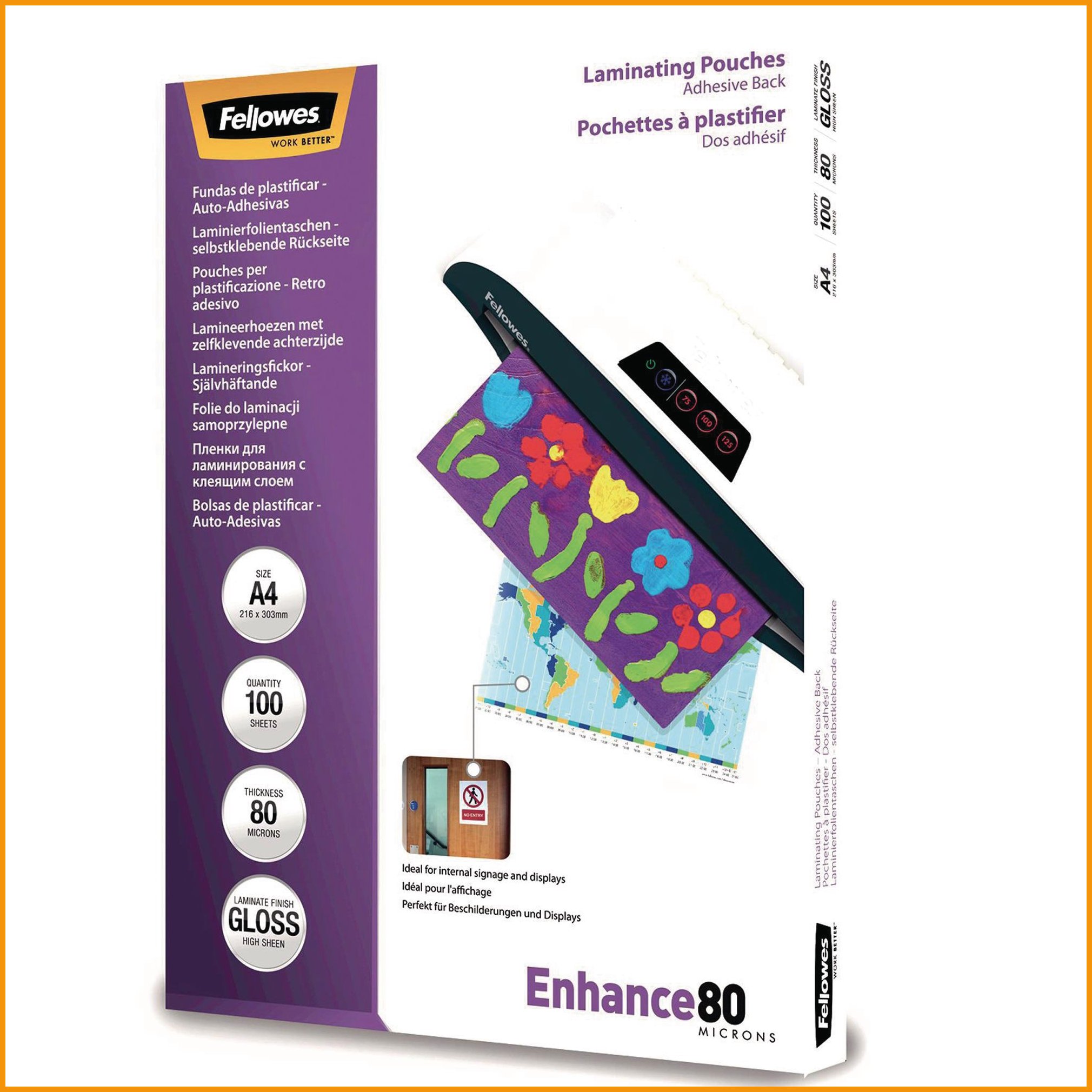 Korkealaatuisessa fellowes-laminointitaskussa on tarratausta. pakkauksessa on 100 taskua. Laminointitaskun minimitilaus 1. Tukkupakkauksessa 5.Laminointitasku Fellowes a4 2x80mic tarratausta kirkas on korkeatasoinen laminointikalvo, jonka toimituksen kesto on verkkokaupasta tilattuna 1-2 päivää.