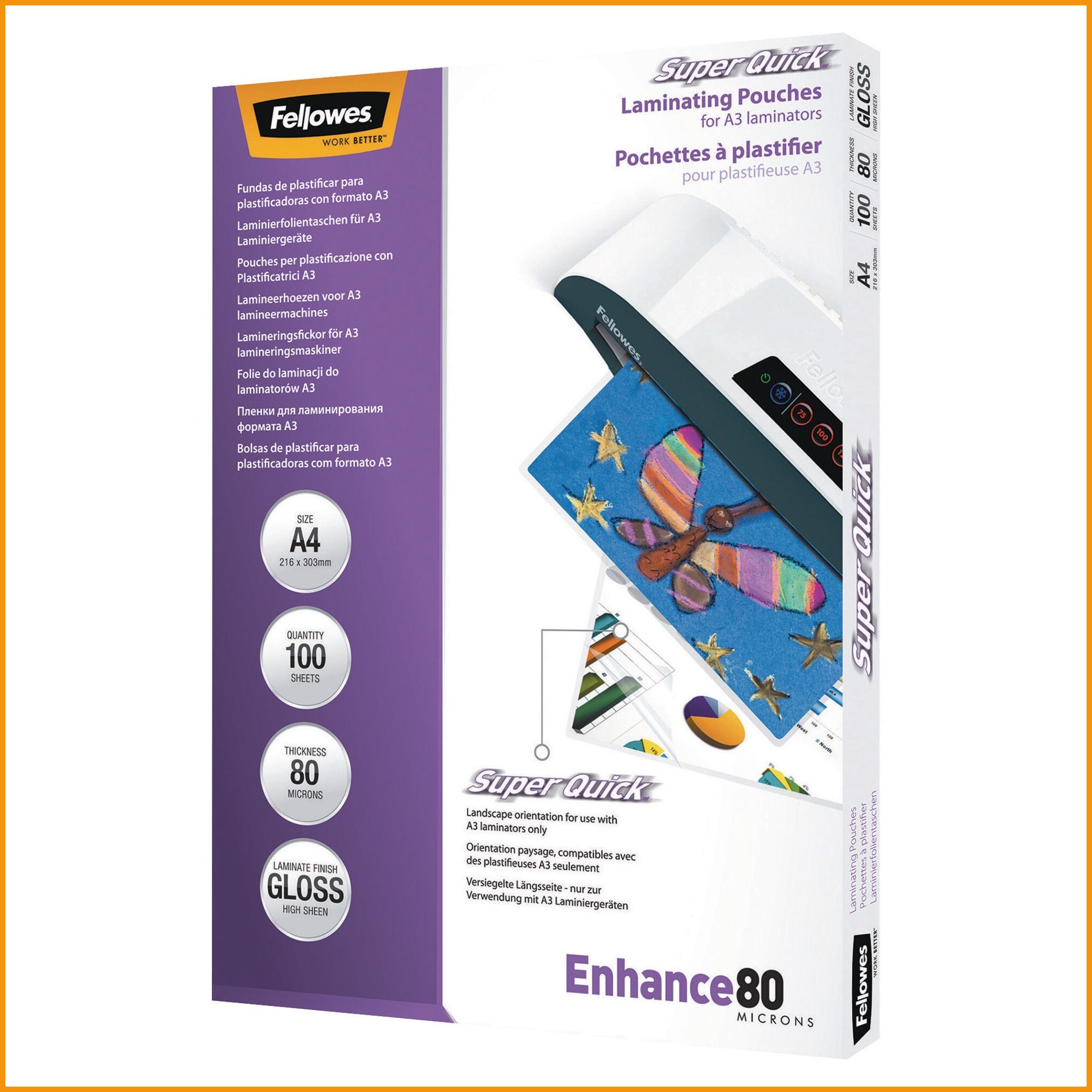 Laminointitasku Fellowes superquick a4 2x80mic kirkas 100kpl on korkealaatuinen laminointikalvo, jonka verkkokaupan tilauksen toimitus kestää 1-2 päivää.