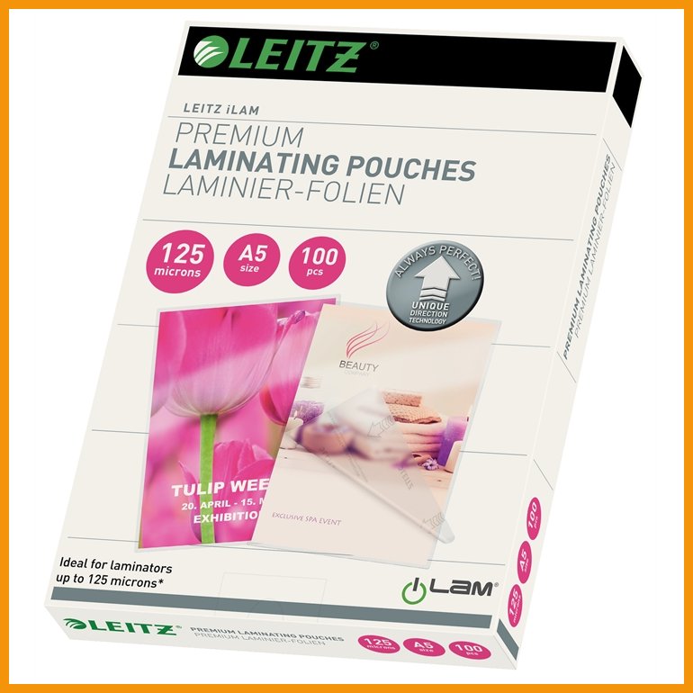 Leitzin kaikkien valmistajien laminointilaitteisiin sopivissa iLAM Premium UDT -laminointitaskuissa on käyttöä helpottavat, oikean syöttösuunnan varmistavat nuolet, jotka katoavat laminoinnin yhteydessä. Taskuissa on kirkas pinta. Laadukkaita laminointitaskuja käyttämällä ehkäiset tukokset ja varmistat upean lopputuloksen.Koko: A5