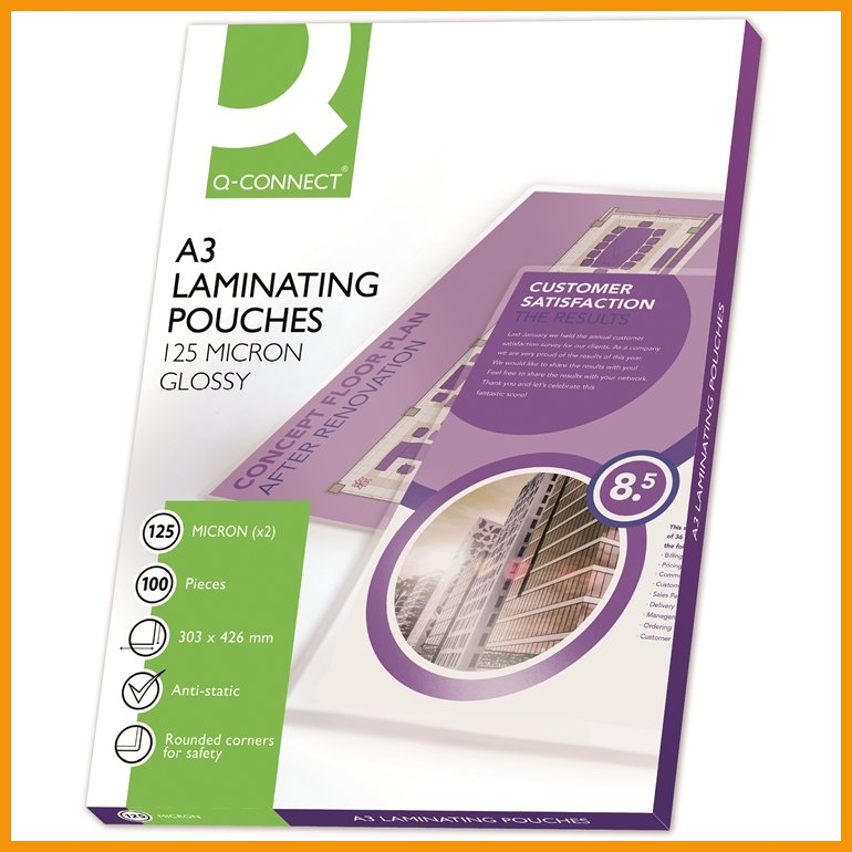 Q-Connectin kirkkaat, kulmistaan pyöristetyt laminointitaskut toimivat kaikkien laminointilaitteiden kanssa. Laadukkaita laminointitaskuja käyttämällä ehkäiset tukokset ja varmistat upean lopputuloksen.Koko: A3
