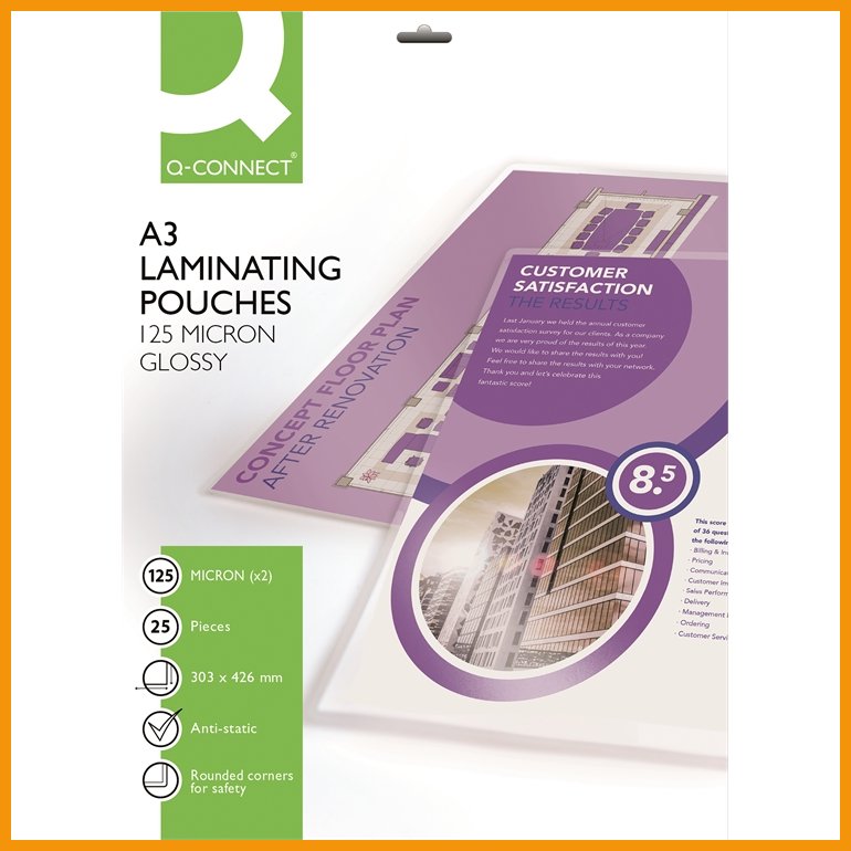 Q-Connectin kirkkaat, kulmistaan pyöristetyt laminointitaskut toimivat kaikkien laminointilaitteiden kanssa. Laadukkaita laminointitaskuja käyttämällä ehkäiset tukokset ja varmistat upean lopputuloksen.Koko: A3