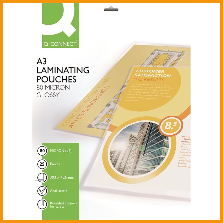 Q-Connectin kirkkaat, kulmistaan pyöristetyt laminointitaskut toimivat kaikkien laminointilaitteiden kanssa. Laadukkaita laminointitaskuja käyttämällä ehkäiset tukokset ja varmistat upean lopputuloksen.Koko: A3