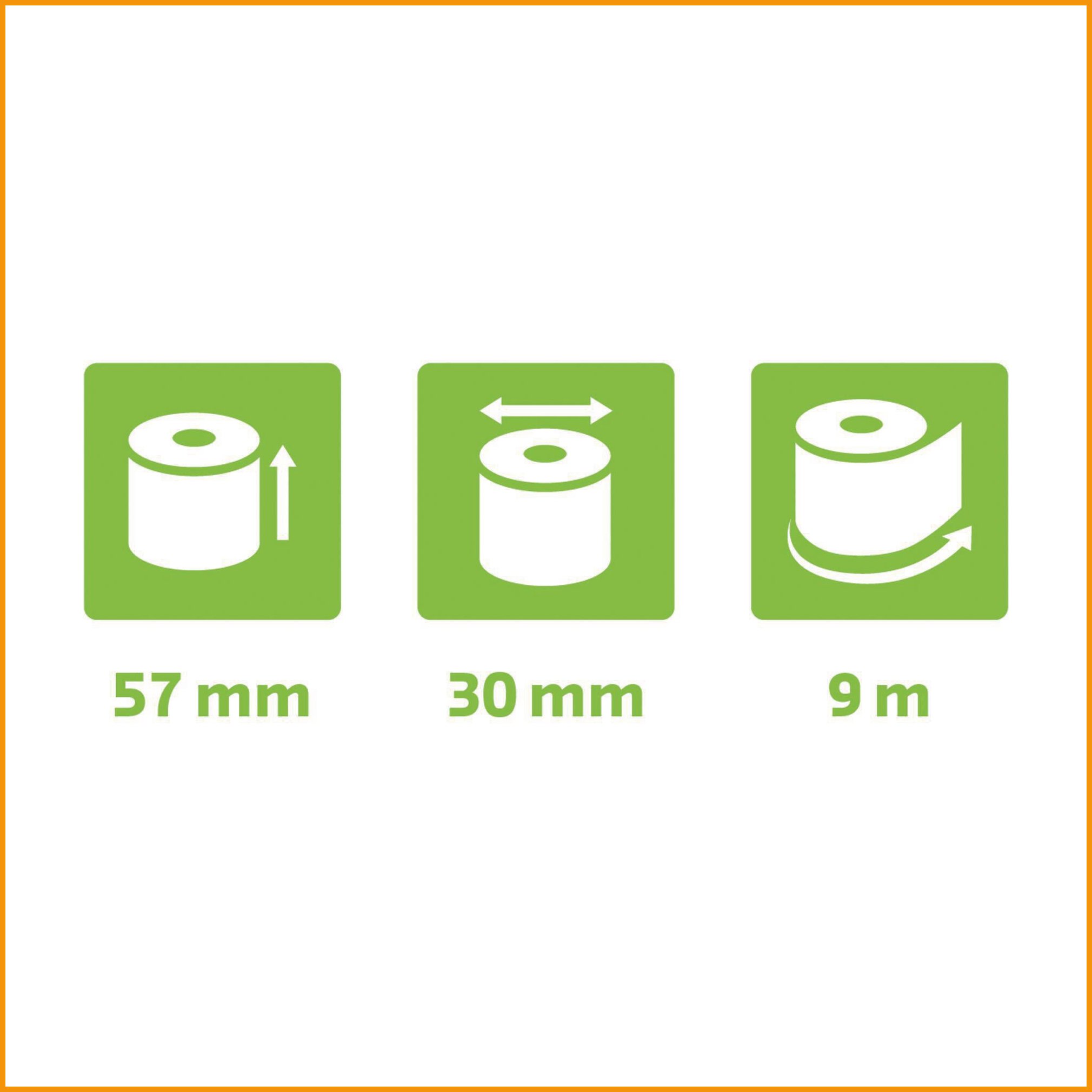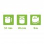 | Lämpöpaperirullan mitat | Hylsy Ø: 12 mm Leveys: 57 mm Pituus: 9 m Rulla max. Ø: 30 mm |