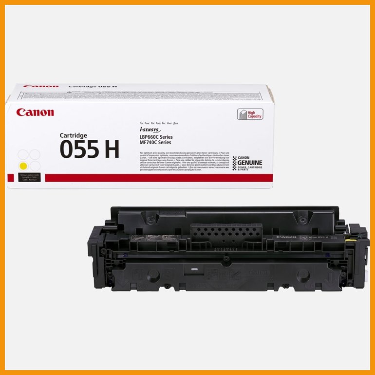 Canon 055H Y LBP664/MF742 keltainen laserkasetti sopii Canonin ammattikäyttöön suunniteltuihin lasertulostimiin. Alkuperäinen Canon värikasetti on luotettava ja suurikapasiteettinen laserkasetti, jossa on tehtaan hyvä takuu.