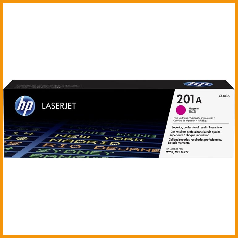 Laserkasetti Hp CF403A on aito ja alkuperäinen värikasetti Hp tulostimeen. Taulukossa vasemmalla ovat Hp tulostimet, joihin tämä värikasetti sopii. CF403A laserkasetti on riittoisa, sen tulostuskapasiteetti on noin 1400 sivua viiden prosentin peitolla.