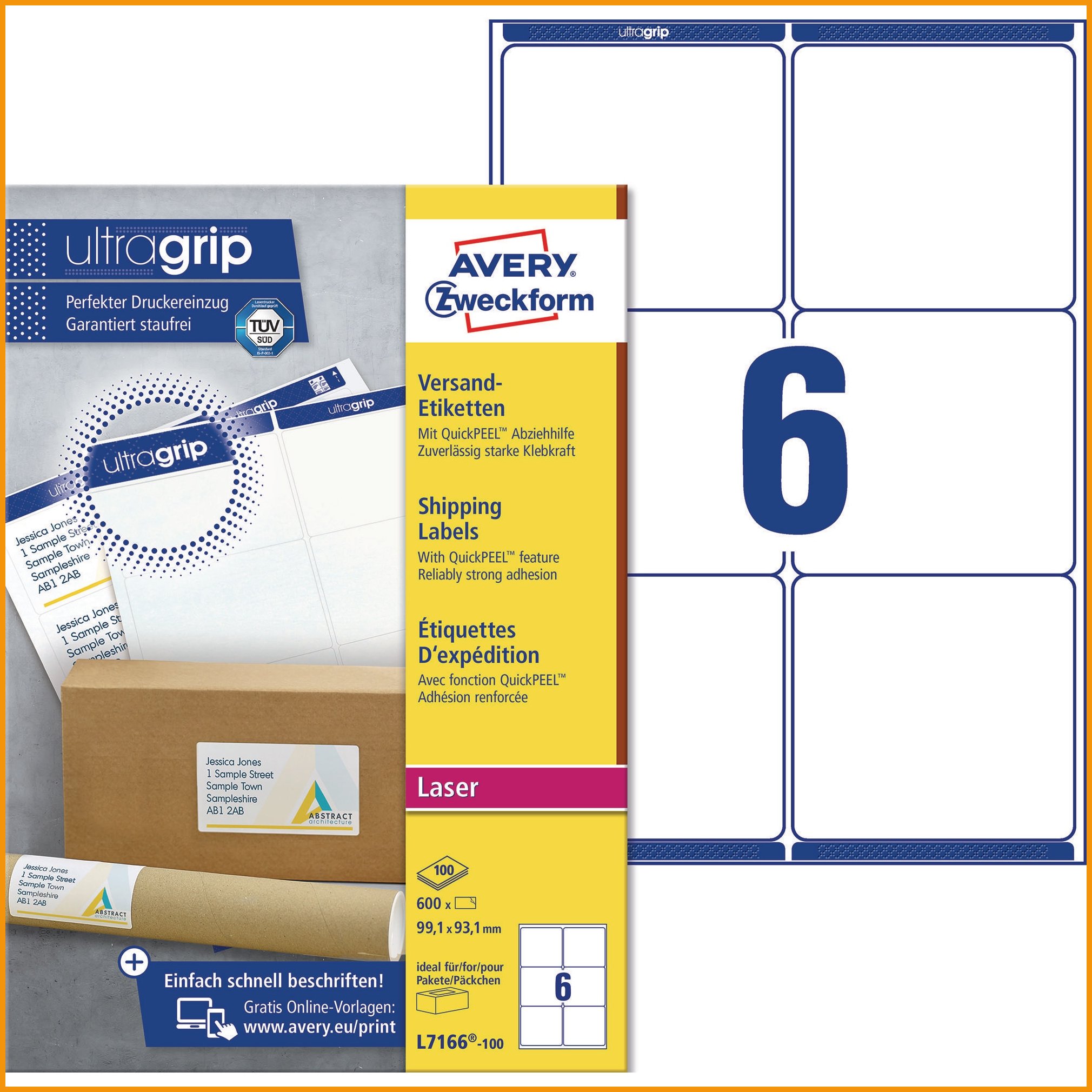 Avery-osoitetarroille voidaan tulostaa sekä laser- että mustesuihkutulostimilla. tarrat eivät tuki tulostinta, ja ne on helppo irrottaa taustapaperista. ympäristöystävälliset tarrat on fsc-sertifioitu. ilmaiset tarrapohjat ja ohjelmisto tarrojen suunnitteluun löytyvät osoitteesta www.avery.fi. tarran koko: 99,1 x 93,1 mm. yhdellä arkilla on 6 tarraa ja paketissa 100 arkkia. Lasertarrojen minimitilaus 1 paketti = 600 kpl. Tukkupakkauksessa 5 pakettia.Lasertarrat toimitetaan 600 kappaleen erissä.