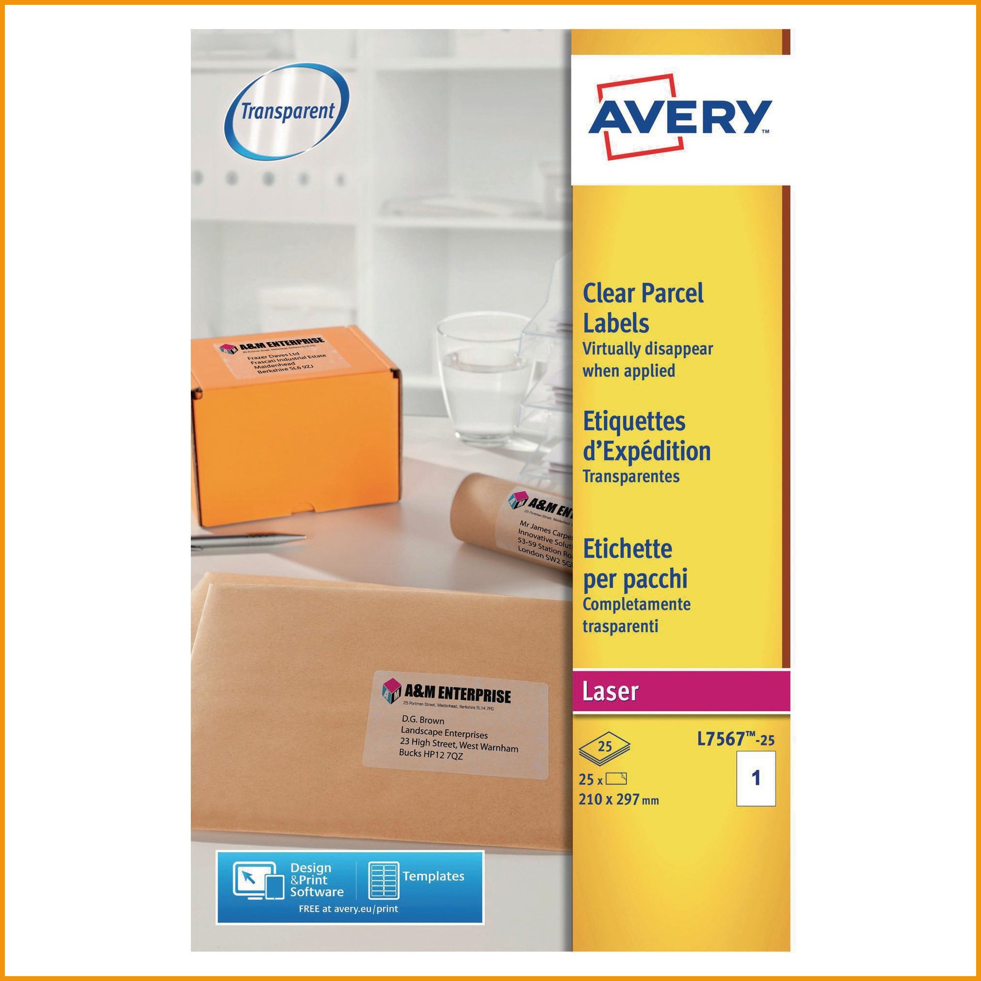 Averyn läpikuultavat tarrat lähes katoavat valkoisille, värillisille tai teksturoiduille taustoille. kirjekuoren väri näkyy läpi antaen vaikutelman, että osoite olisi tulostettu suoraan kirjekuoreen. sekä öljyn-, lian-, veden- että säänkestävät (-20 °c - +80 °c) tarrat on helppo irrottaa taustapaperista. tarran koko: 210 x 297 mm. ilmaiset tarrapohjat ja ohjelmisto tarrojen suunnitteluun osoitteesta www.avery.fi. yhdellä arkilla on 1 tarra ja paketissa on 25 arkkia.Lasertarrat toimitetaan 25 kappaleen erissä.