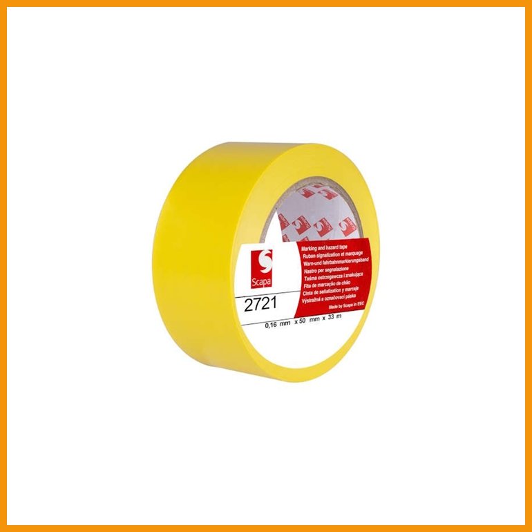 Scapa 2721 on laadukas lattiamerkintäteippi, jossa yhdistyvät mekaaninen lujuus ja erinomainen kulutuskestävyys. PVC-pohjaisessa teipissä on kumiliima, joka pitää niin sisätiloissa kuin suojatuissa ympäristöissä myös ulkona.