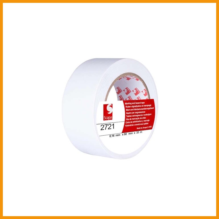 Scapa 2721 on laadukas lattiamerkintäteippi, jossa yhdistyvät mekaaninen lujuus ja erinomainen kulutuskestävyys. PVC-pohjaisessa teipissä on kumiliima, joka pitää niin sisätiloissa kuin suojatuissa ympäristöissä myös ulkona.