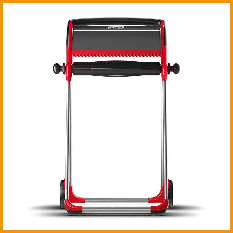 Torkin tyylikäs punaisen ja mustan sävyinen lattiateline W1-järjestelmän käsipyyherullille. Pyörien varassa siirreltävä Performance-sarjan annostelija liikkuu kevyesti sinne, missä sitä eniten tarvitaan. Arkki repeytyy luotettavasti suuren kapasiteetin rullasta, ja telineen täyttäminen rullan loputtua on vaivatonta.Mitat: 100,6 x 53 x 64,6 cm