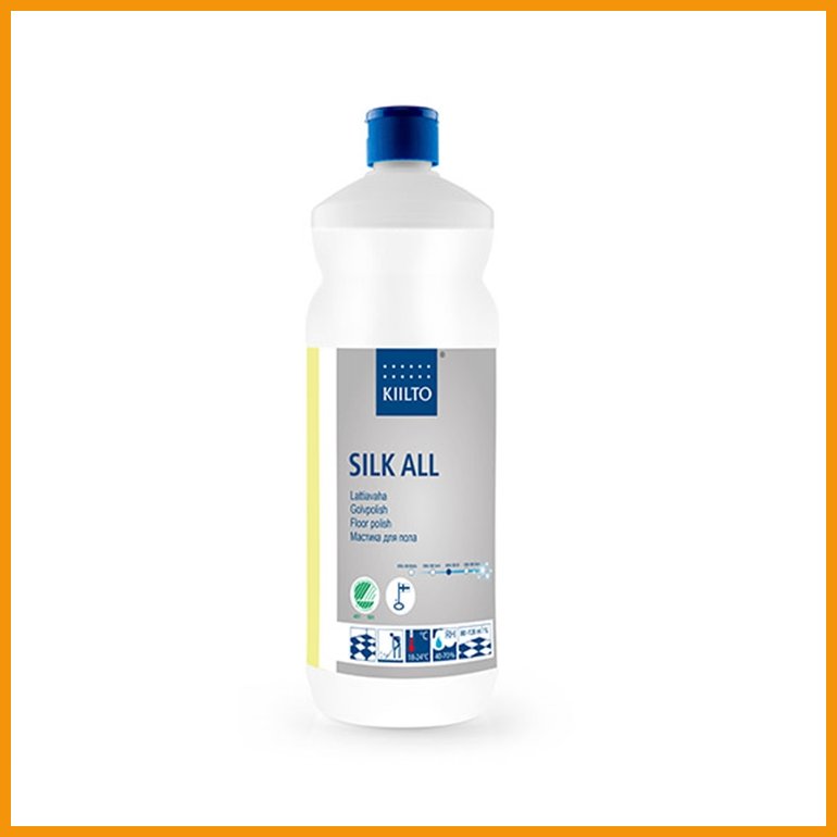 Kiilto Pro Silk All on helppolevitteinen ja askelvarma lattiavaha perus- ja paikkavahaukseen. Kulutusta ja kemikaaleja (myös käsihuuhteita) kestävä tuote sopii kaikille vahattaville lattiamateriaaleille, joille se jättää puolikiiltävän pinnan. Kiiltoastetta voidaan säätää kalvojen lukumäärällä.Kotimaisella tuotteella on Avainlippu-tunnus.