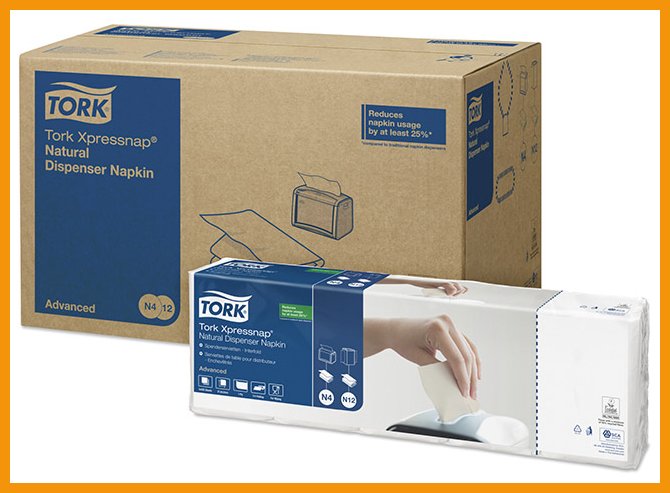 Advanced-laatuinen Tork Xpressnap Extra Soft -lautasliina on ihanteellinen ratkaisu itsepalveluravintolaan, jossa käy paljon asiakkaita. Lautasliinat on esitaitettu ja käyttövalmiita suoraan paketista.Kierrätetystä FSC-sertifioidusta kuidusta valmistetulla paperilla on EU Ecolabel -ympäristösertifikaatti.