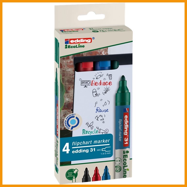 Edding 31 Ecoline on etenkin fläppitauluille ja muille paperisille pinnoille tarkoitettu lehtiökynä. Kynän runko ja muut muoviosat on valmistettu vähintään 90-prosenttisesti kierrätysmateriaalista. Vesipohjainen ja kirkasvärinen muste on hajutonta, xyleenitöntä ja tolueenitonta eikä vuoda paperin läpi. Kynä ei kuivu, vaikka taskuklipsillä varustettu suojakorkki jäisi auki päiviksi. Korkki ja nuppi ovat musteen väriset.Kynän mustesäiliö on täytettävissä ja saatavilla on jopa vaihtokärkiä.