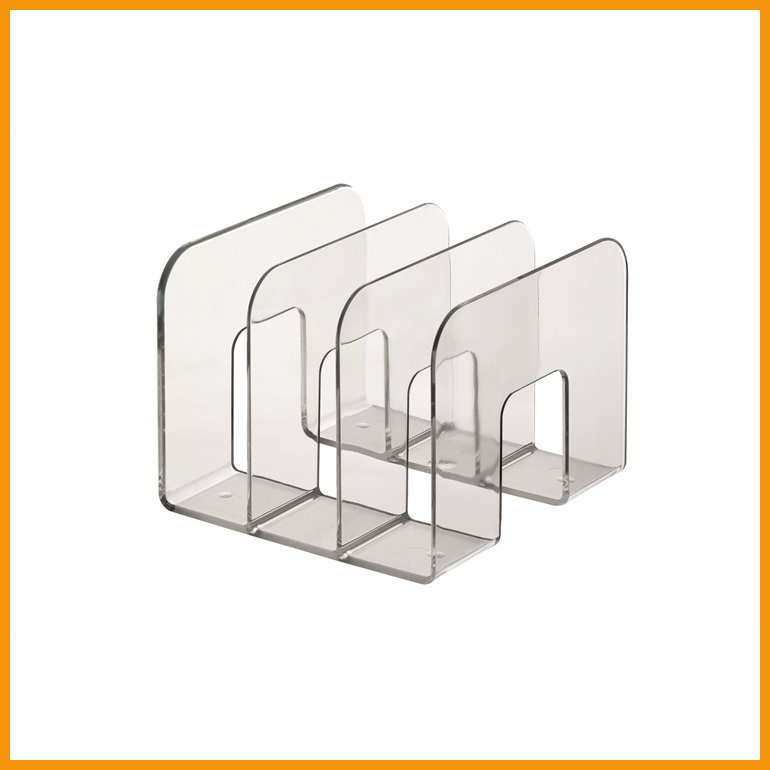 Durable Trend -lehtitelineessä on kolme osastoa lehdille tai esitteille. Teline on valmistettu kirkkaasta polystyreenistä.Mitat: 215 x 210 x 165 mm