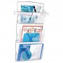 Esiteteline kirkas Lyreco 3-osainen on kestävä ja tyylikäs polystyreenistä valmistettu seinäteline julkisiin tiloihin ja toimistoihin. Seinätelineeseen mahtuu 24x32cm dokumenttejä. 100% kierrätettävää materiaalia.