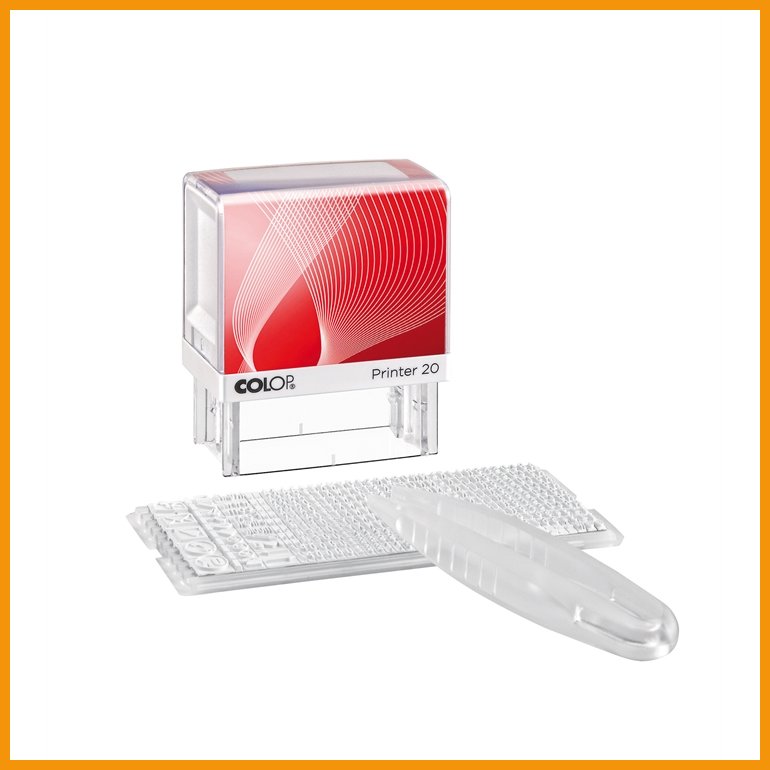 Colop Printer 20/1 on itsevärjäytyvä automaattileimasin 3,5 mm kirjakesarjalla (kirjaimet, numerot, piste, kysymysmerkki yms.). Leimasimeen mahtuu 4 tekstiriviä ja jokaiselle riville 17 merkkiä. Pakkauksessa on leimasimen lisäksi kirjakesarja, ladontapinsetit ja musta värityyny.Löydät lisää värityynyjä verkkokaupastamme koodilla 252025 (musta E/20).