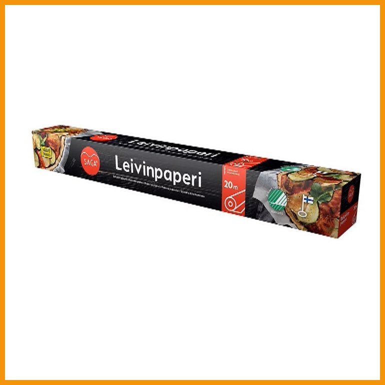 Saga Leivinpaperi on monikäyttöinen tuote uunipellin tai -vuoan suojaamiseen leivonnassa ja ruoanlaitossa. Rasvatiivis tuote kestää 250 °C lämpötilan ja useamman käyttökerran ennen kierrättämistään. Pakkauksessa on näppärä leikkuuterä, jonka avulla saat rullasta aina oikeankokoisen palan paperia. Tuote on biohajoava ja kompostoituva.