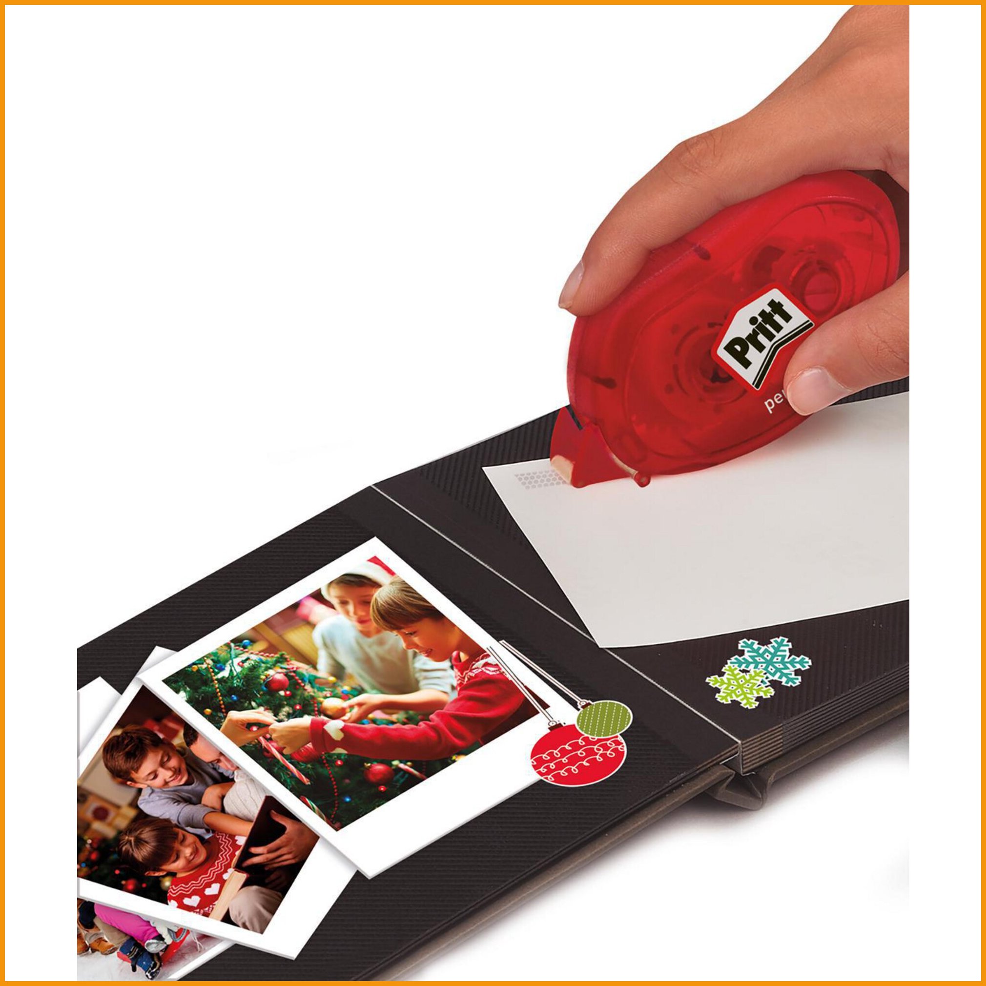 Liimarolleri Pritt pysyvällä liimalla mitat liimateipin leveys 8,4 mm ja kaksipuoleisen liimateipin pituus 8,5 m. Liimarollerilla on helppo liimata paperia, valokuvia, jne eivätkä sormet sotkeudu liimaan.