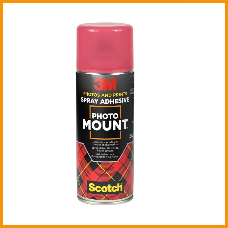 3M Scotch PhotoMount on lujan ja pysyvän liimasidoksen muodostava, suihkepullosta hallitusti suihkutettava valokuvaliima. Tuote on tarkoitettu erityisesti valokuvien kiinnitykseen, mutta toimii myös useimmilla sekä huokoisilla että kiinteillä pinnoilla, kuten kartongin, julisteiden ja karttojen liimaamiseen. Kirkas liima kuivuu hitaasti, joten liimattavaa työtä voidaan asetella tai siirtää paikasta toiseen ennen kuivumista.Pakkauskoko: 400 ml.